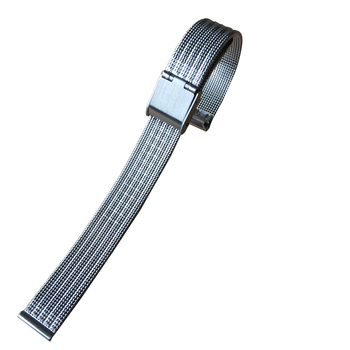 สายนาฬิกาโลหะแบบ Milanese ตาข่ายโลหะสแตนเลสสีเงินขนาด0.6มม. พร้อมหัวเข็มขัดเสริม